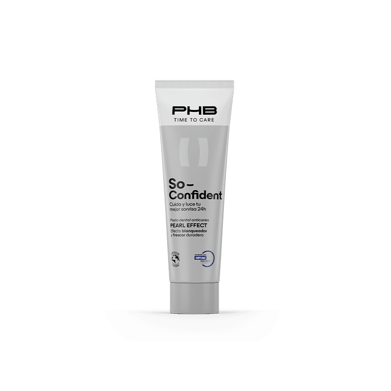 Con la pasta dental anticaries PHB® So-Confident, cuida y luce tu mejor sonrisa durante todo el día. Gracias a su efecto blanqueador PEARL EFFECT, cuida el esmalte de tus dientes mientras recuperan su blanco natural.