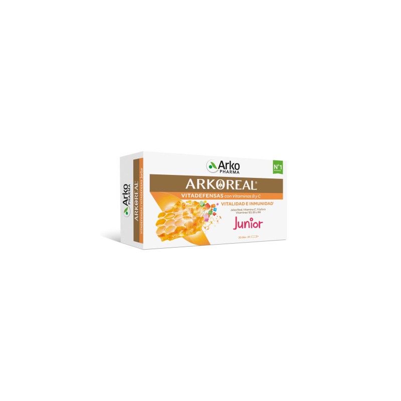 Arkoreal® Jalea Real Vitadefensas Junior es un complemento alimenticio a base de Jalea Real, Vitaminas y Fósforo.